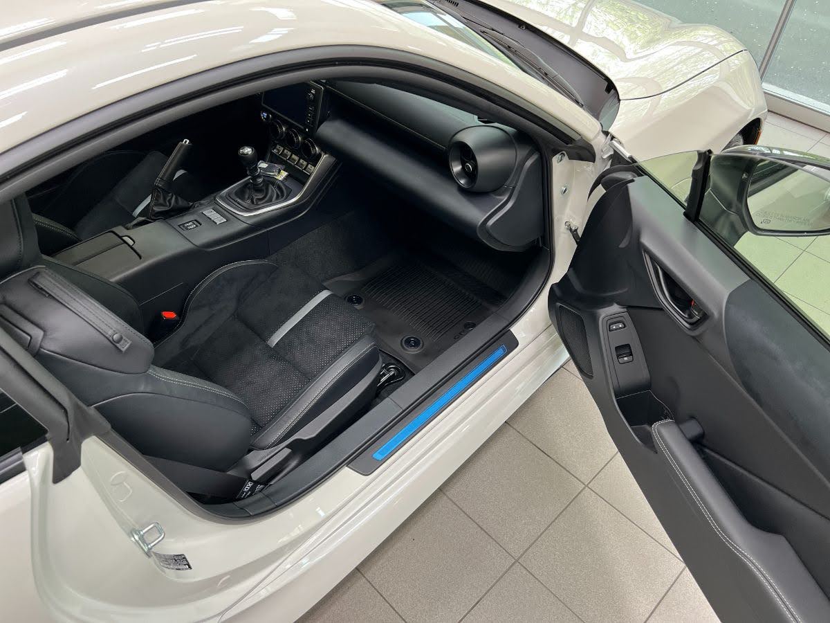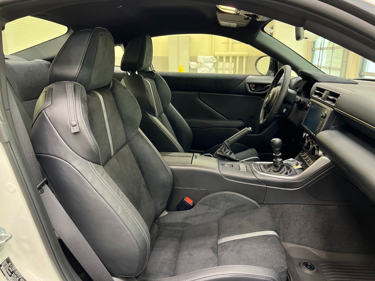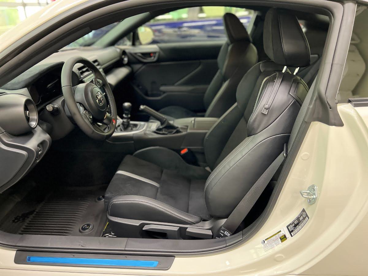 This 2023 GR86 Premium Edition is a little more expensive, but it includes larger wheels with grippy summer performance tires, adaptive LED headlights (swivel as you turn the steering wheel for better illumination in curves), a bigger wing, and heated seats.